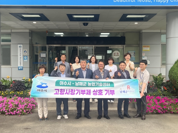 [아시아월드뉴스] 남해군 농업기술센터와 여수시 농업기술센터가 지난 11일 고향사랑기부금 상호기부를 하며 직원 간 우애를 다졌다.