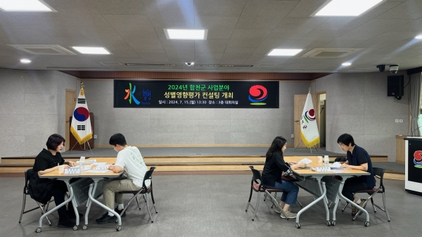 [아시아월드뉴스] 합천군은 15일 군청 대회의실에서 성별영향평가 전문 컨설턴트 2명과 11개 부서 사업담당자와 함께 성별영향평가 대면컨설팅을 실시했다.