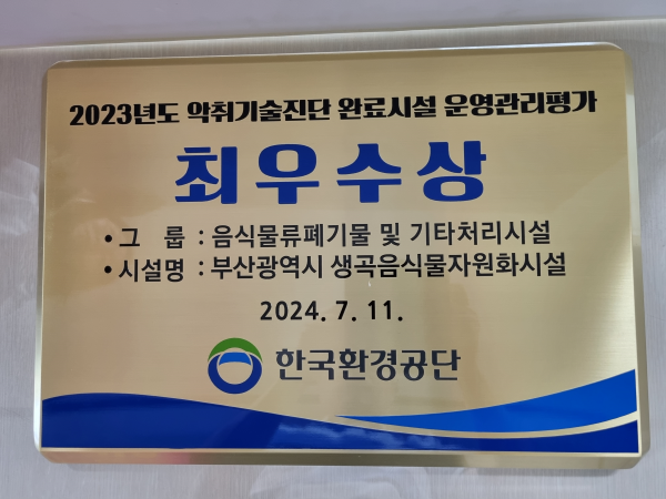 [아시아월드뉴스] 부산시와 부산환경공단은 ‘생곡음식물자원화시설’이 한국환경공단에서 실시한 2023년도 악취기술진단 완료시설 운영관리 평가에서 최우수상을 받았다고 밝혔다.