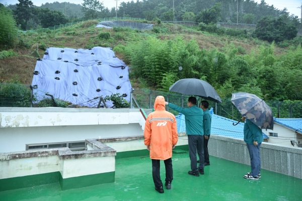 지난 14일 집중 폭우로 인해 장승포동 536-5번지 일원에 산사태가 발생했고 이에 따라 즉각적인 주민 대피 조치와 더불어 추가 피해 예방을 위한 방수천막 설치 및 유입토사 제거 작업 등을 신속하게 시행했다.
