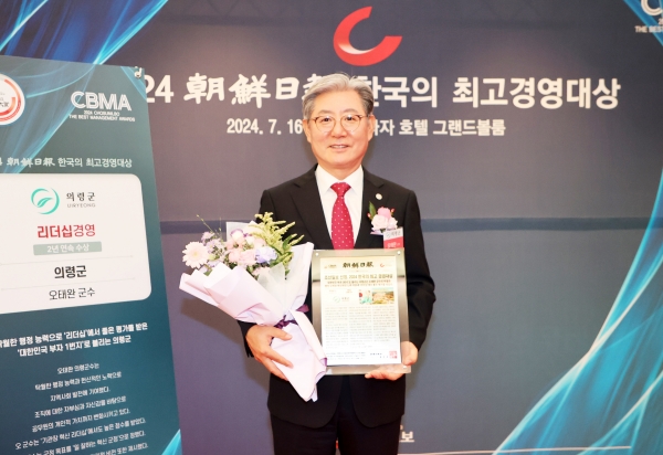 [아시아월드뉴스] 경남 의령군은 16일 서울 더플라자호텔에서 개최한 ‘2024 한국의 최고경영대상’ 시상식에서 '리더십경영' 부문 대상을 수상했다.