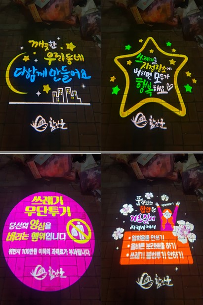 이에 지난달 17일부터 이달 10일까지 가야읍 3개소, 칠원읍 3개소 함안·대산·칠서·산인면 각 1개소씩 총 10개소에 쓰레기 분리배출 홍보를 위한 바닥조명을 설치했다.