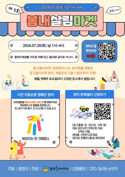 봄내살림마켓은 춘천두레소비자생활활동조합이 주관하는 재사용 문화를 확산하기 위한 대표 장터로 올해 다섯 번째다.
