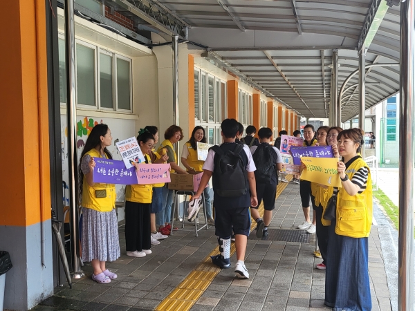 [아시아월드뉴스] 사천시 복지·청소년재단 소속 사천시 청소년상담복지센터는 지난 18일 1388청소년지원단과 함께 여름방학을 맞이한 삼천포중학교 학생들을 대상으로 생명존중 캠페인을 펼쳤다.