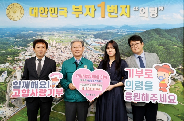최진실 대표는 “의령 발전에 도움 되고 싶었고 고향사랑기부제에 동참하게 되어서 또한 뿌듯하다”고 전했다.