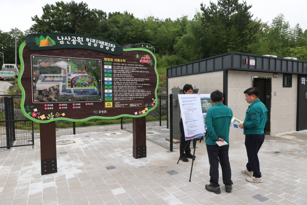 또한 남산공원 힐링캠프에는 주차장이 설치되어 차량을 이용하는 군민들이 편리하게 남산공원을 이용할 것으로 기대된다.