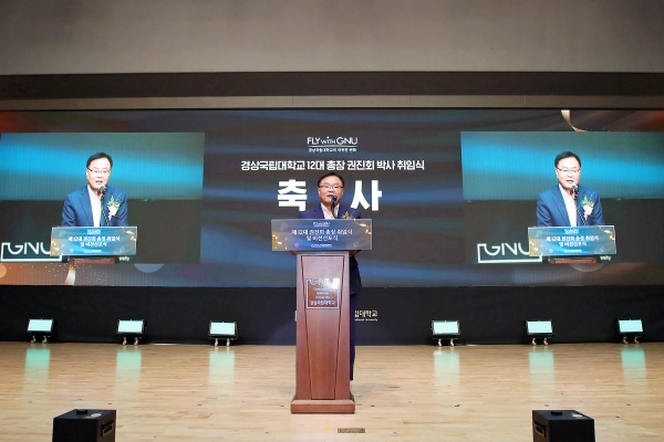 이날 취임식에서 권진회 총장은 Fly with GNU, 혁신을 이끄는 국가거점국립대학의 리더’라는 비전으로 ‘혁신하는 대학, 성장하는 대학, 행복한 대학으로 거점 국립대 Top.3 진입’의 포부를 밝혔다.