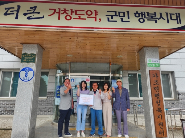 [아시아월드뉴스] 거창군 가조면은 23일 거창유흥협회에서 가조면 노인회에 주방용품을 기부했다고 밝혔다.