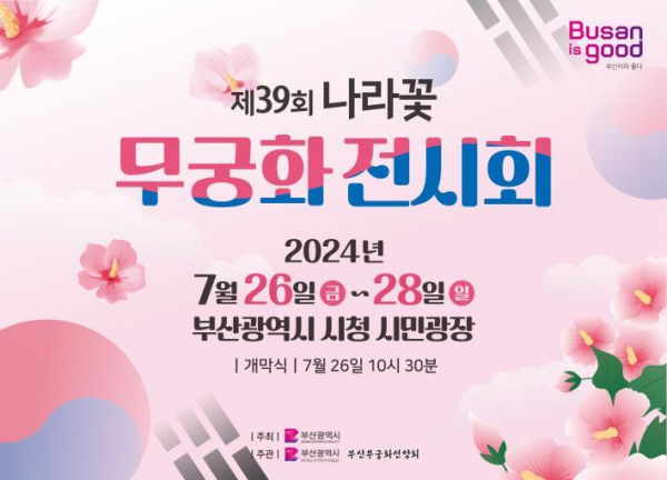 [아시아월드뉴스] 부산시 푸른도시가꾸기사업소는 오는 26일부터 7월 28일까지 시청 앞 시민광장 일원에서 ‘제39회 나라꽃 무궁화 전시회’를 개최한다고 밝혔다.