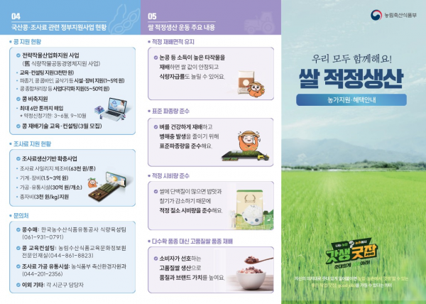 벼 재배면적 감축 협약을 신청하면 공공비축미를 ㏊당 최대 300포 배정 및 정부 사업 신청 시 가점 부여 등의 혜택을 받을 수 있다.
