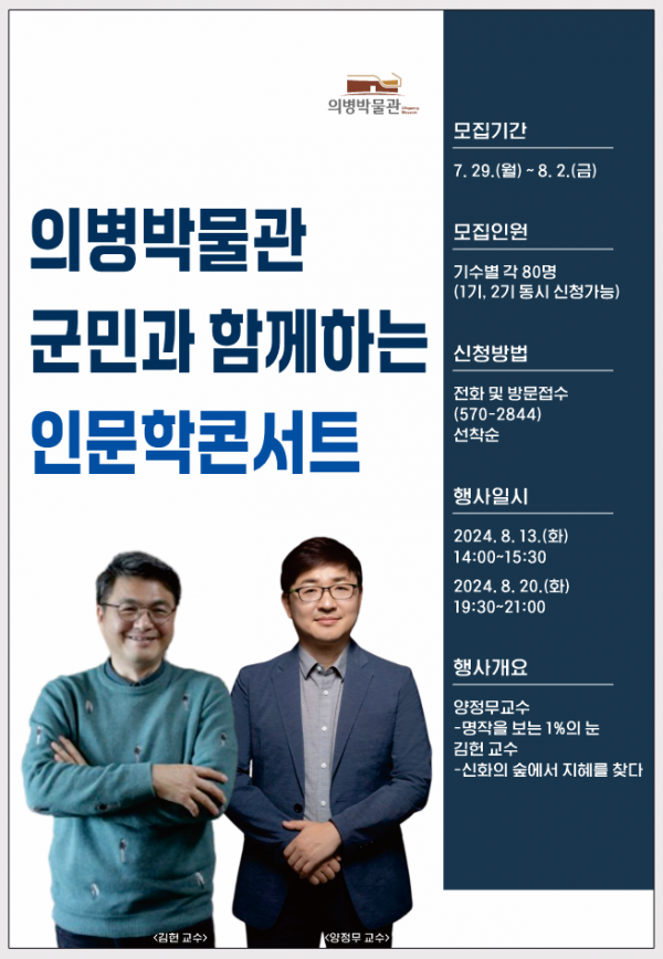 [아시아월드뉴스] 의병박물관이 8월 13일과 20일 ‘군민과 함께하는 인문학콘서트’를 개최한다고 밝혔다.