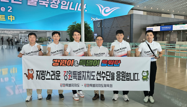 [아시아월드뉴스] 김진태 강원특별자치도지사, 양희구 도 체육회장 등 9명으로 구성된 ‘강원이·특별이 응원단’이 제33회 파리올림픽 현지응원을 펼치기 위해 금일 파리 출국길에 올랐다.