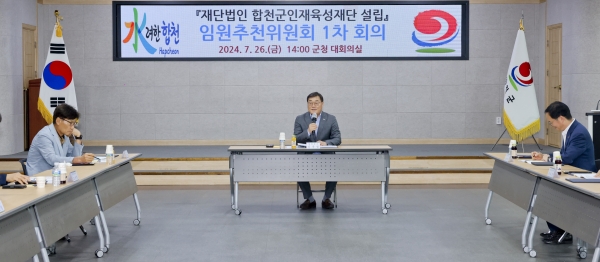 [아시아월드뉴스] 합천군은 26일 군청 대회의실에서 합천군인재육성재단 임원추천위원회 1차 회의를 개최하고 재단 임원 모집계획안 등을 심의·의결했다.