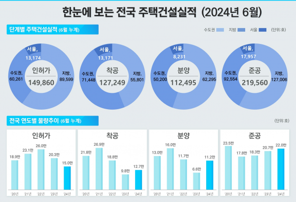[아시아월드뉴스] 국토교통부는 2024년 6월 기준 주택 통계를 공표했다.