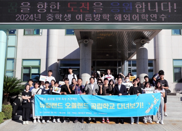 하동군장학재단은 지난 31일 관내 중학생 25명이 8월 1일부터 22일까지 진행되는 어학연수를 위해 뉴질랜드 북부 오클랜드로 출발했다고 밝혔다.