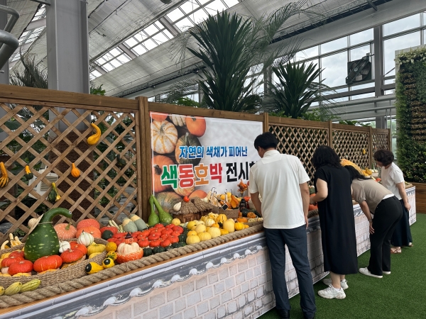 색동호박 전시회 관람 시간은 오전 9시 30분부터 오후 4시까지로 월요일은 휴관하며 관람료는 무료이다.