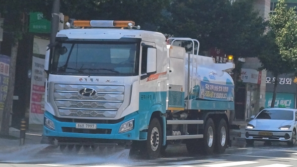 [아시아월드뉴스] 거제시는 지난 3일 연일 극심한 무더위가 지속됨에 따라 이달부터 주요 도로에 살수차를 운영한다고 밝혔다.