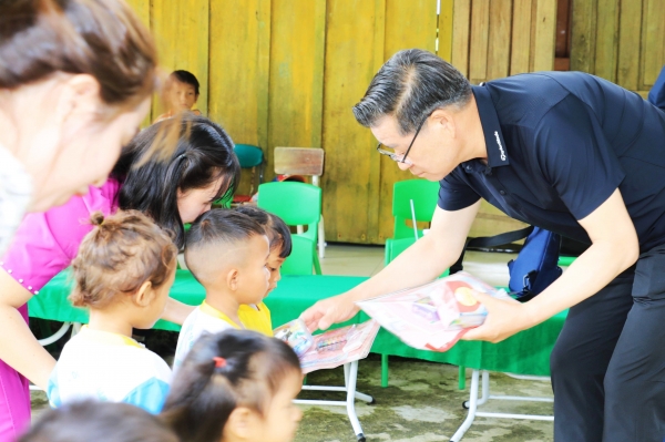이어 8월 1일에는 남짜미현을 방문해 2017년부터 새마을 협력사업으로 공적지원을 해온 짜린유치원을 방문해 학생들과 만남의 시간을 갖고 준비해 간 학용품을 선물로 증정했다.