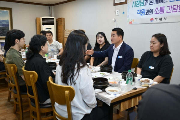 [아시아월드뉴스] 박종우 거제시장이 지난 7월 복지민원담당자들과의 소통간담회에 이어 5일 허가과 민원담당직원 10여명과 소통간담회를 가졌다.