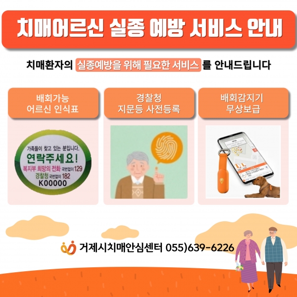 또한 치매어르신의 지문, 사진, 보호자 연락처 등 신상 정보를 사전에 경찰청 시스템에 등록하면 실종 시 경찰이 보다 신속하게 치매어르신의 정보를 확인해 귀가를 도울 수 있다.