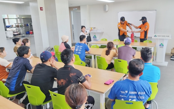 이번 훈련은 외국인이 대상인 것을 감안해 통역을 대동해 진행했으며 화재 발생 시 상황 전파, 화재 대피요령, 소화기 사용법, 심폐소생술 등 재난 상황에 맞게 실습 훈련을 병행해 진행됐다.