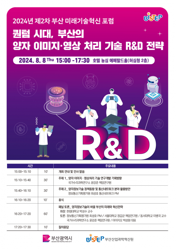 패널토론에서는 △박성수 한림대 교수 △정갑균 서울대 책임연구원 △이병국 동서대 교수 △박성원 아이지오 대표가 참여해 ‘양자정보기술이 바꿀 부산의 미래와 혁신전략’을 주제로 토론하고 질의응답을 가질 예정이다.
