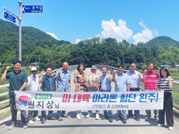 [아시아월드뉴스] 함양군 휴천면 송전마을 원지상씨가 64일 만에 미국 대륙 마라톤 횡단을 성공적으로 마치고 지난 8월 1일 귀국했다.
