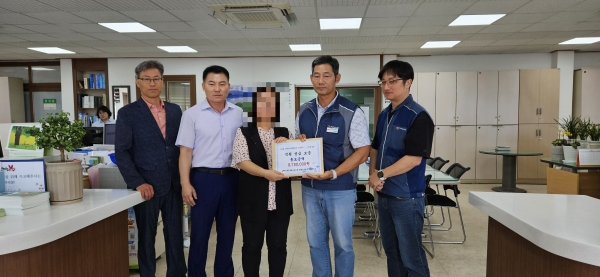 지난 5일 군 공무원을 대표해서 공무원노조 의령군지부는 의령군 용덕면행정복지센터를 방문해 A주무관에게 동료 직원들이 십시일반 모금한 성금을 전달했다.
