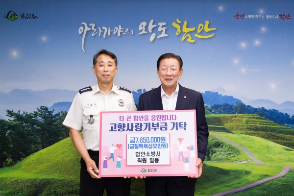 이에 조근제 함안군수는 “군민의 재산과 생명을 지키는 소방 공무원들의 뜻깊은 기부에 감사드리며 소중한 기부금은 함안 발전을 위해 꼭 필요한 곳에 사용하겠다”고 답했다.