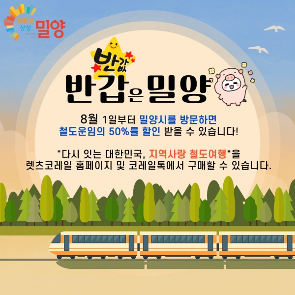 이번 프로모션은 해당 기차 여행객이 밀양에서 3만원 이상 소비 인증 시 1만원 상당의 밀양사랑상품권을 지급하는 것이다.
