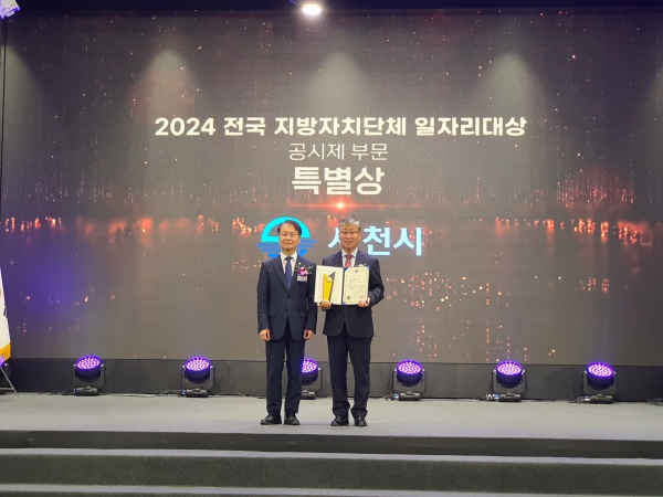 [아시아월드뉴스] 사천시는 지난 8일 서울 엘타워에서 고용노동부 주관‘2024년 전국 지방자치단체 일자리대상’지역일자리 공시제 부문 ‘특별상’을 수상했다.