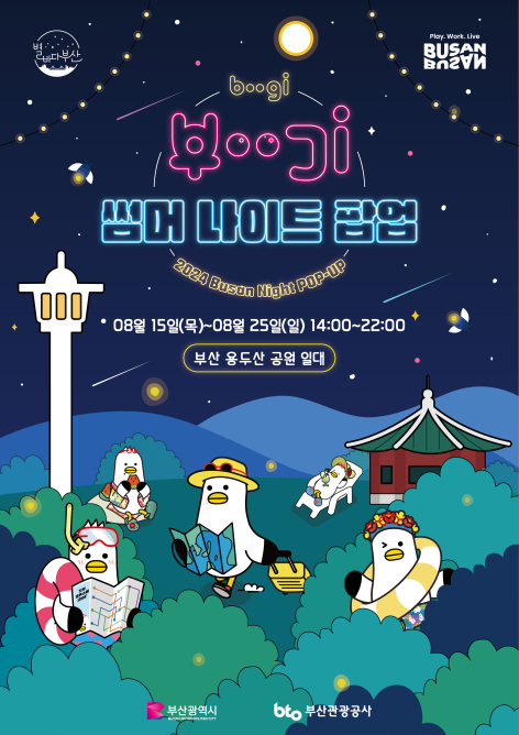 [아시아월드뉴스] 부산시는 부산관광공사와 오는 15일부터 8월 25일까지 용두산공원에서 '부기 썸머나이트 팝업'을 운영한다고 밝혔다.