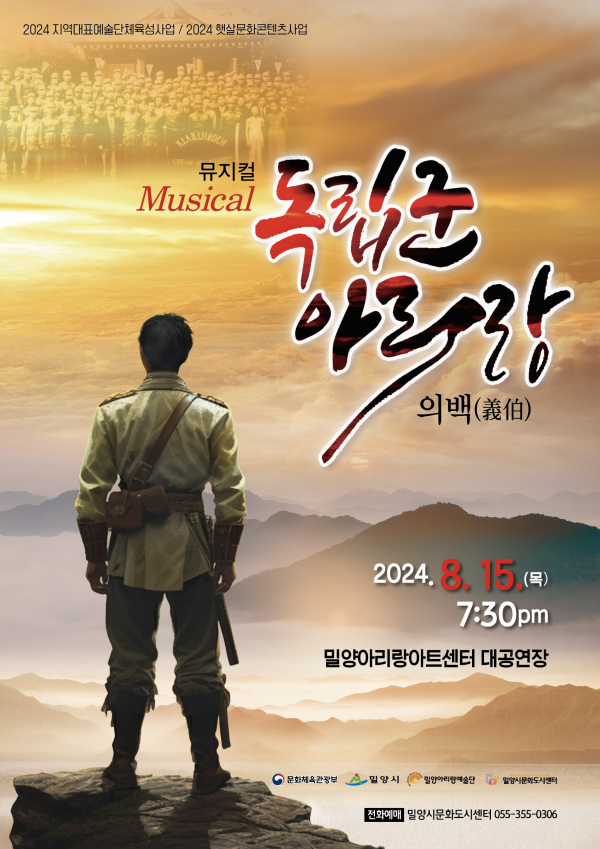 밀양아리랑예술단 창단기념 공연으로 밀양 출신 독립투사의 활약상을 담은 뮤지컬‘독립군아리랑’을 오는 15일 밀양아리랑아트센터 대공연장에서 선보일 예정이다.