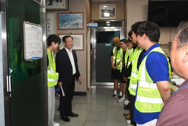 [아시아월드뉴스] 구인모 거창군수는 지난 9일 거창국제연극제와 야외물놀이장, 캠핑장 운영으로 많은 관광객이 찾고 있는 수승대 관광지를 방문해 안전관리 근무자를 격려했다.
