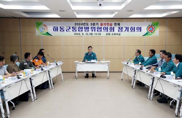 [아시아월드뉴스] 하동군은 12일 군청 소회의실에서 민·관·군·경·소방의 통합방위 태세를 확립하기 위한 ‘2024년도 3분기 통합방위협의회’를 개최했다고 밝혔다.