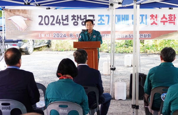 성낙인 군수는 “첫 모내기에 이어 무사히 벼 조기재배 첫 수확 행사를 개최하게 된 것을 매우 뜻깊게 생각한다”며 “창녕의 우수한 고품질 쌀 조기 출하로 햅쌀 시장을 선점하고 농가소득 증대로 이어지기를 기대한다”고 전했다.