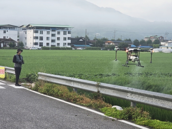 이번 공동방제는 마을별, 들녘별 적기 공동방제를 실시해 농촌의 고령화, 부녀화에 따른 노동력 부족을 해소하고 고품질 쌀생산을 통한 농가소득 안정화에 기여하고자 마련됐다.
