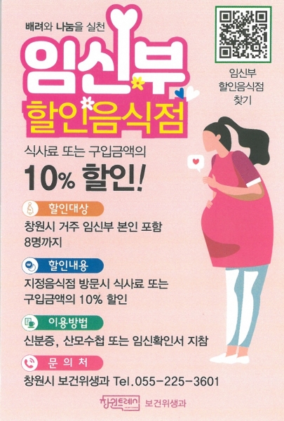 박경옥 보건위생과장은 “경제난, 고물가 등으로 많은 어려움을 겪고 있음에도 불구하고 임신부 할인음식점에 적극 동참해 주신 영업주분들의 배려와 나눔의 실천이 창원시민에게 큰 힘이 될 것이며 많은 참여 부탁드린다”고 말했다.