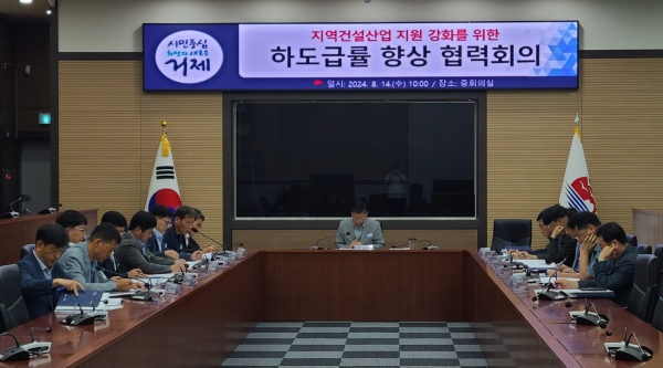 [아시아월드뉴스] 거제시는 8월 14일 거제시청 중회의실에서 ‘지역건설산업 지원 강화를 위한 하도급률 향상 협력회의’를 개최했다.