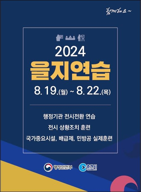 [아시아월드뉴스] 춘천시가 19일부터 22일까지 전시 대비를 위한 을지연습을 실시한다.