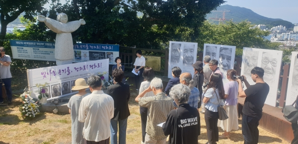 이날 기념식은 남망산공원 일본군 위안부 피해자 정의비 앞에서 통영시의회 의원, 시민 등 20여명이 참석한 가운데 일본군위안부 피해자 기림일 시민기억행동 ‘빛나는 용기를 정의로 평화로’라는 주제로 1부 추모제와 2부 기념사, 연대사, 성명서 낭독, 헌화 순으로 진행됐다.