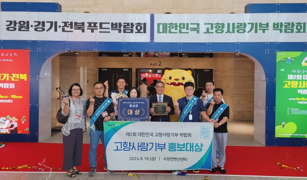 [아시아월드뉴스] 정선군은 8월 16일부터 18일까지 3일간 수원컨벤션센터에서 열리는 제2회 대한민국 고향사랑기부 박람회에 참가해 개막식에서 고향사랑기부제 홍보부문 대상을 수상했다고 밝혔다.