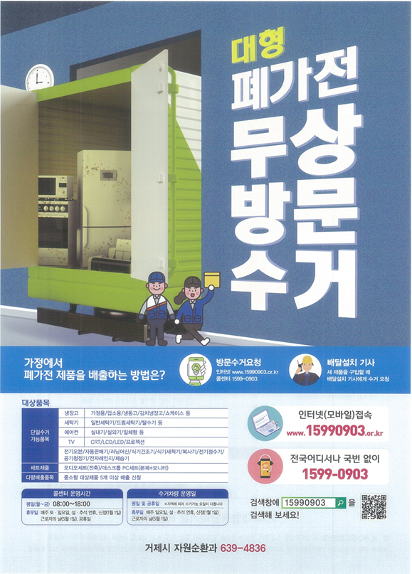 [아시아월드뉴스] 거제시는 환경부가 주최, 한국전자제품 자원순환공제조합이 주관하는 폐가전 무상 방문 수거 서비스를 활발히 진행 중이라고 밝혔다.