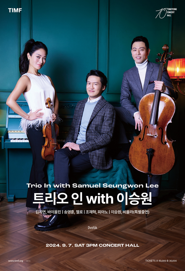 [아시아월드뉴스] 스타 연주자 세 사람이 만든 ‘트리오 인'의 공연이 9월 7일 토요일 오후 3시, 통영국제음악당 콘서트홀에서 통영국제음악재단(이사장 천영기) 주최로 열린다.