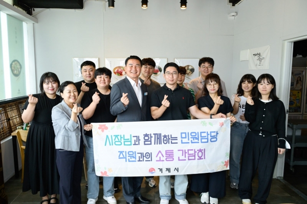 [아시아월드뉴스] 박종우 거제시장은 19일 복잡하고 다양해지는 민원서비스에 최선을 다하고 있는 도로과 민원처리 담당공무원과 소통간담회로 직원의 애로사항을 청취하고 격려하는 시간을 가졌다.