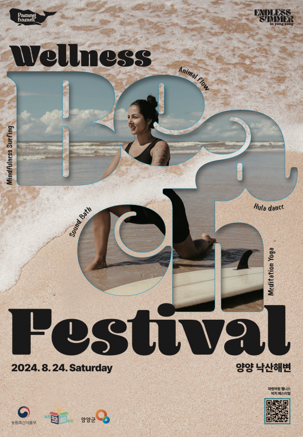 [아시아월드뉴스] 자연 속 액티비티 활동과 웰니스 체험을 함께 즐길 수 있는 ‘양양 웰니스 비치 페스티벌’이 오는 8월 24일 오전 10시부터 오후 8시 30분까지 양양 낙산해변 D지구에서 개최된다.