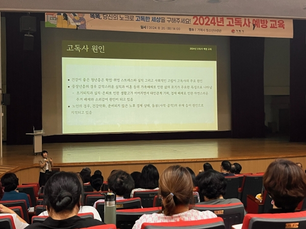 [아시아월드뉴스] 거제시는 지난 20일 관계 공무원, 사회복지 업무 관련 종사자, 지역사회보장협의체위원, 명예사회복지공무원, 행복지킴이단 등 150여명을 대상으로 2024년 고독사 예방교육을 실시했다.