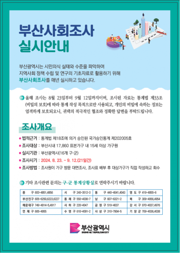 부산시, ‘2024년 부산사회조사’ 내일부터 실시