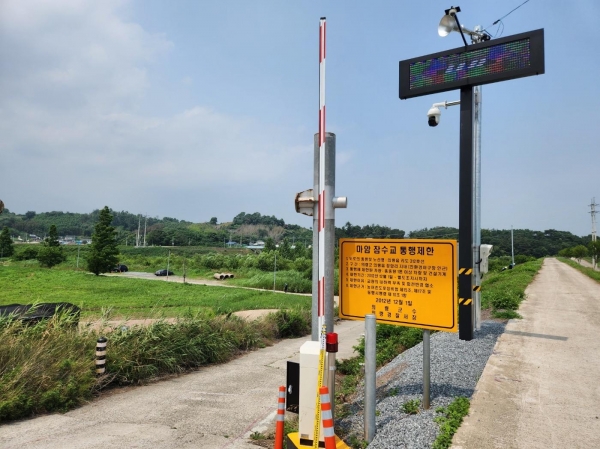 문화관광과 체육시설팀은 둔치에 조성된 친환경 야구장 및 파크 골프장 등 체육시설에 대해 우천 시 진출입을 자동 차단할 수 있는 시설을 설치해 재난 안전 대응에 나섰다.