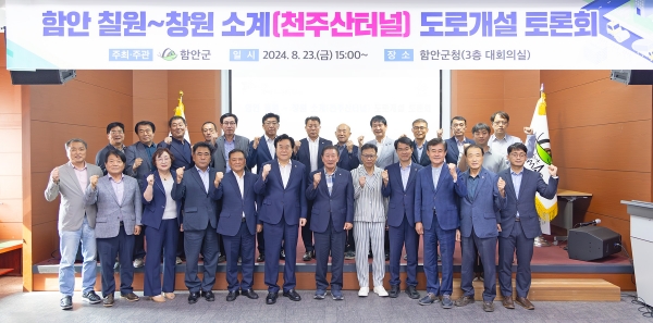 [아시아월드뉴스] 함안군은 23일 군청 3층 대회의실에서 천주산터널 도로개설사업의 필요성과 추진계획에 대한 공감대를 형성하기 위한 전문가 토론회를 개최했다.